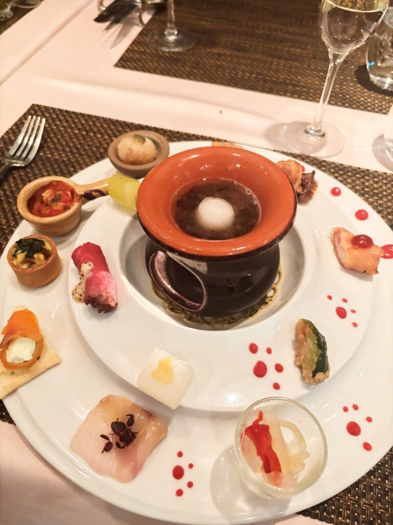 どのお料理も季節に合わせて創意工夫がされていますが、中でも十数種も前菜が並べられたパレットが有名。ティナ―はもちろん、ランチのコースでも楽しめます。